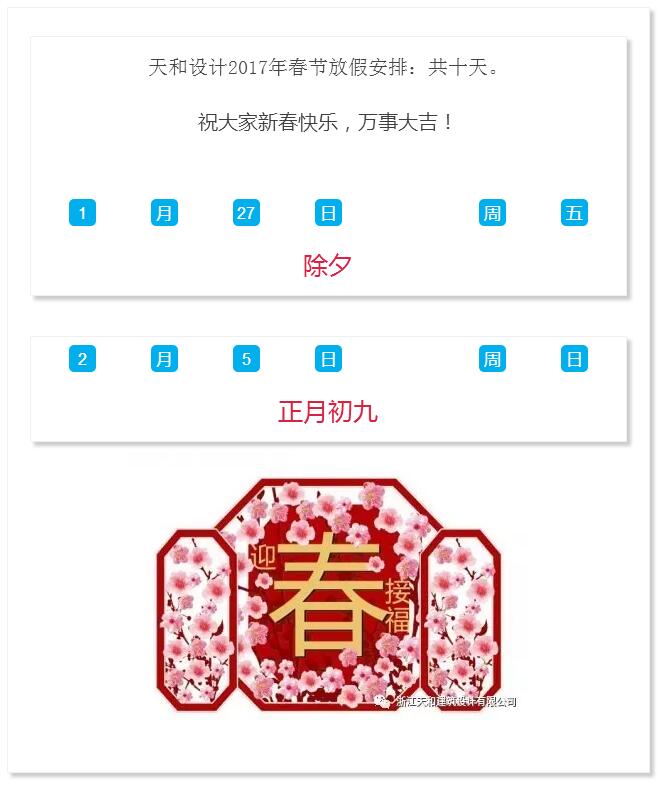 2017新春放假通知